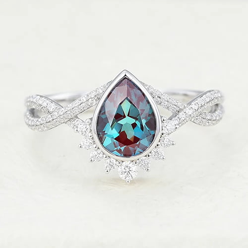 Juyoyo Pear Shaped Lab Alexandrite White Gold Pavé Engagement Ring