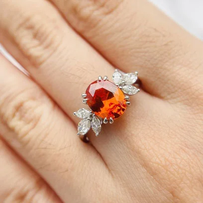 Padparadscha sapphires are a rare and highly prized variety, offering a unique blend of pink and orange hues. The name "Padparadscha" is derived from the Sinhalese word for "lotus blossom", a flower known for its delicate pink and orange hue, which is exactly the color of these sapphires. Padparadscha sapphire's rare and distinctive color symbolizes love, passion, and creativity, making it a unique choice for a unique and exclusive engagement ring.