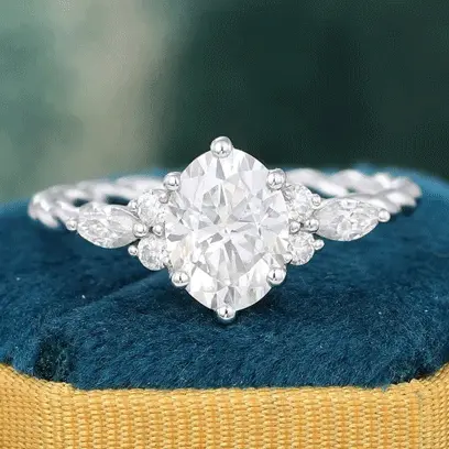 Juyoyo oval cut white sapphire white gold engagement ring
