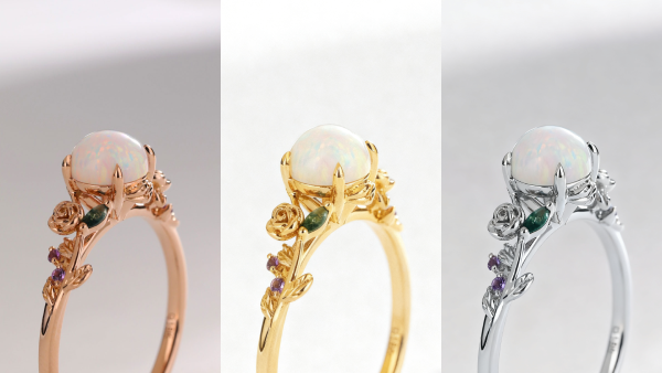 - Rose Gold: This romantic, contemporary choice has a warm, pinkish hue (which comes from its copper alloy). It creates a beautiful, soft contrast with the cool blues and greens in an opal and intensifies any pink or red "pinfire" flashes in the stone. It's a modern-meets-vintage look.