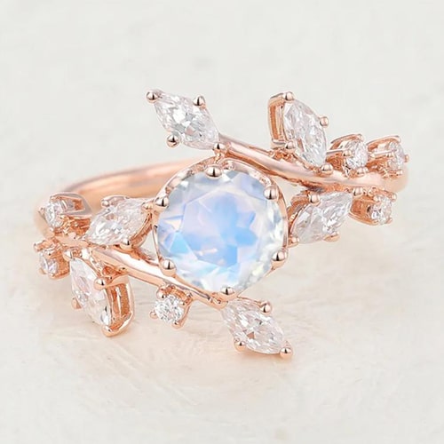 Juyoyo Unique Vintage Rose Gold Moonstone Engagement Ring |