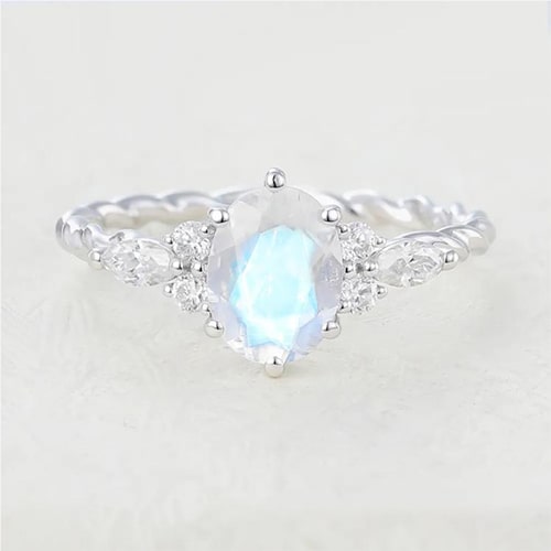 Juyoyo Oval Cut Rainbow Moonstone White Gold Twisted Engagement Ring |