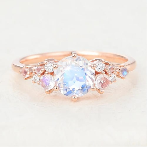 Juyoyo Rainbow Rose Gold Vintage Moonstone Engagement Ring |