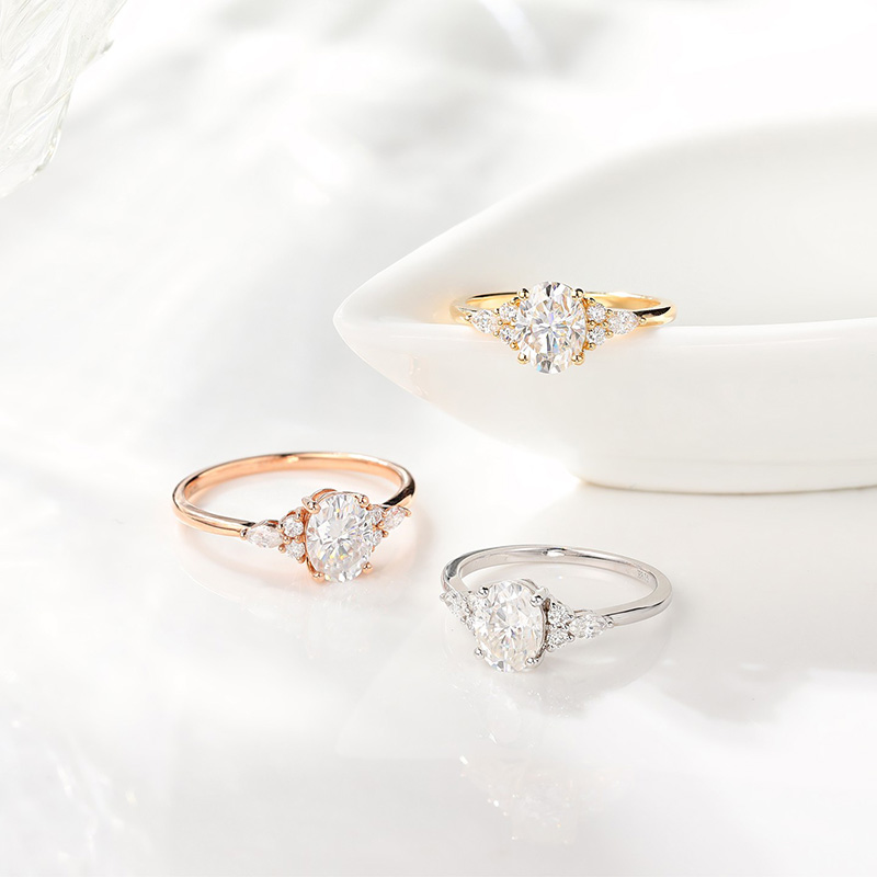 Currently, the classic round cut is the most popular cut in engagement rings. Other common cuts include oval cut, pear cut, marquise cut, princess cut, emerald cut, etc. Different cuts of gemstones produce different visual effects.