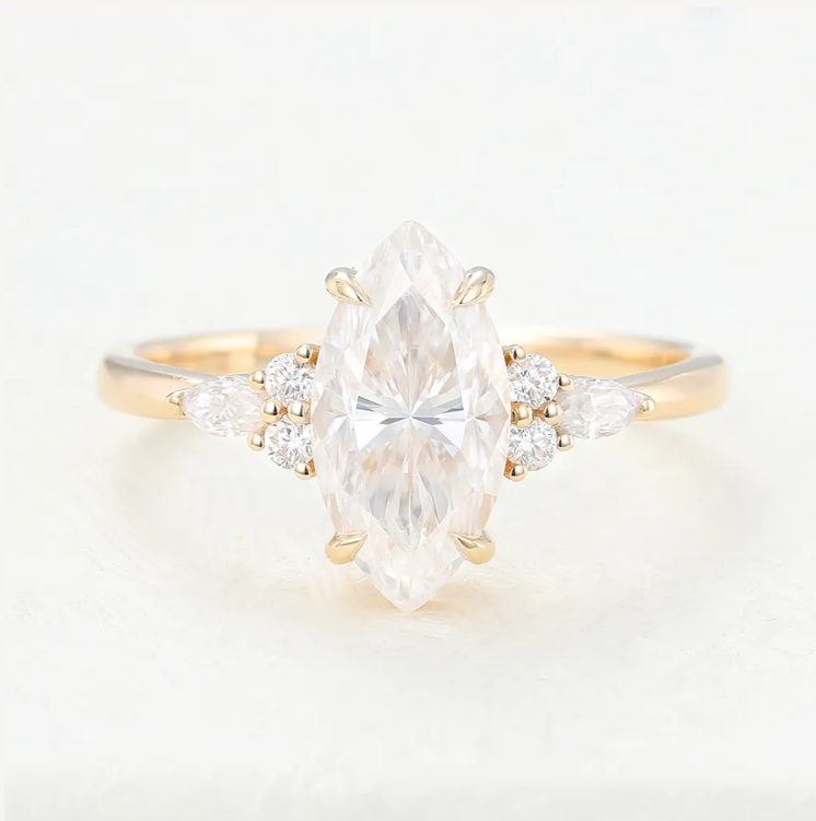 The marquise cut has the largest crown of any fancy cut stone, creating the most sparkle by maximizing the space for light to reflect. It captures hearts because of its unique smile shape, a cut that makes your fingers appear thinner and longer, and its distinctive shape makes them perfect for vintage style.